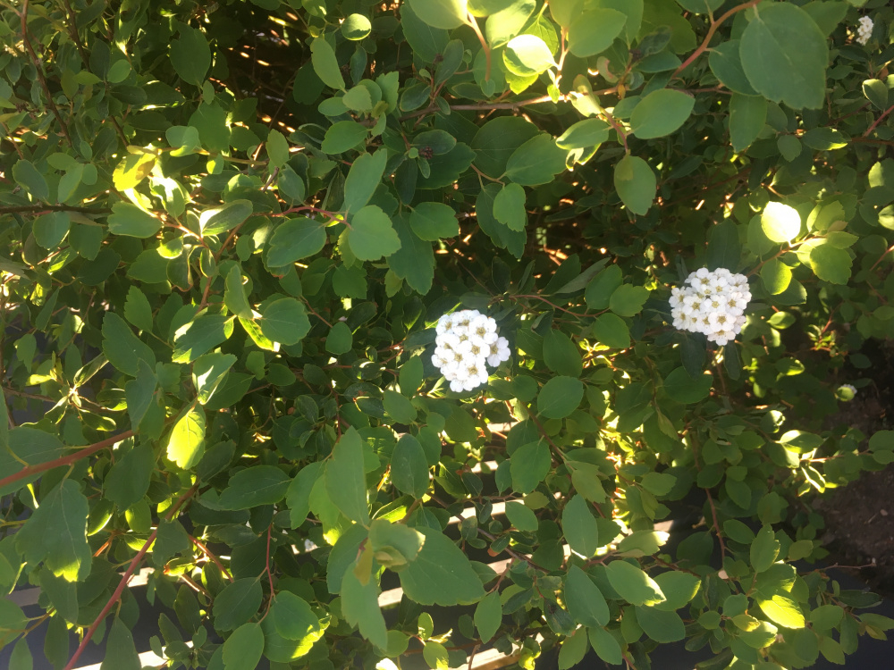 The bottom one is Spirea Vanhouttei, Bridal Wreath.