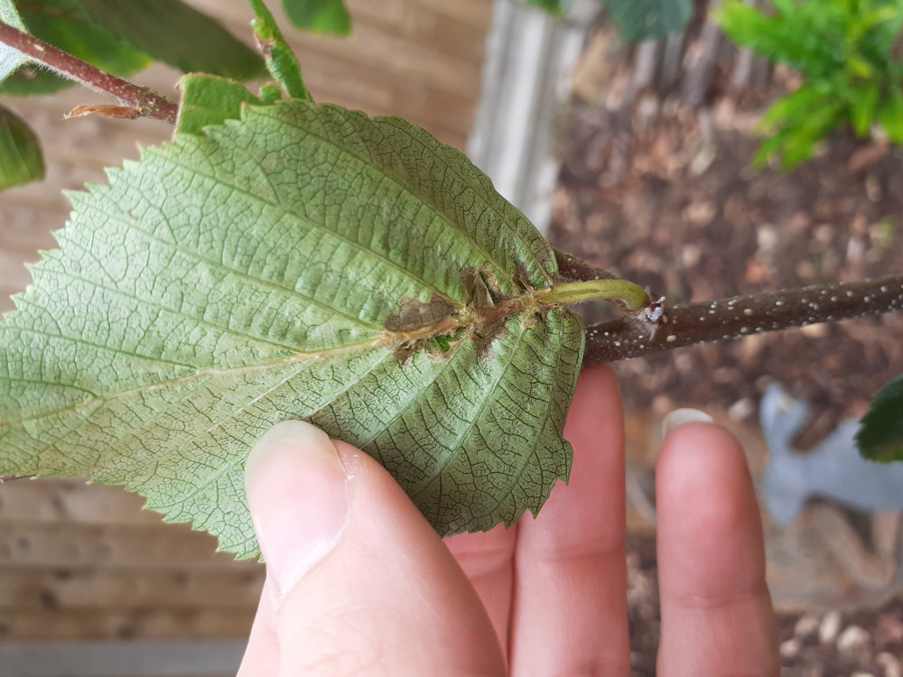 I have a silver birch (betula moonbeam) which I planted out last year. It has had lovely new leaves on this year but some of them have started to yellow and curl and have brown marks on the underside near the stem (I've attached photos) Other leaves seem healthy enough although a few do look a bit nibbled, I can't see any other obvious signs of pests.
