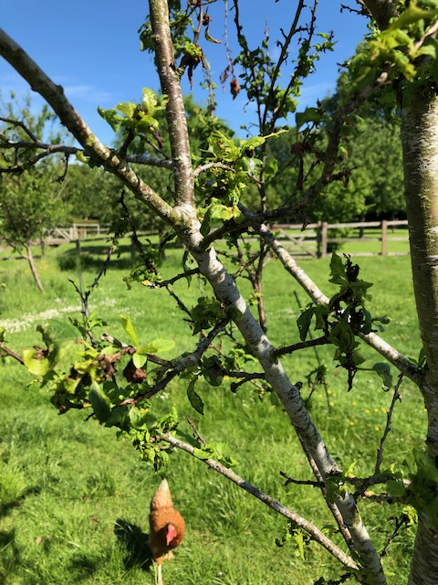 Really appreciate some help with what's going on with my Plum trees. There are some aphids - is that what's causing it all - is it more than that. - how best should i treat it considering its above the chicken run. Its effecting three trees