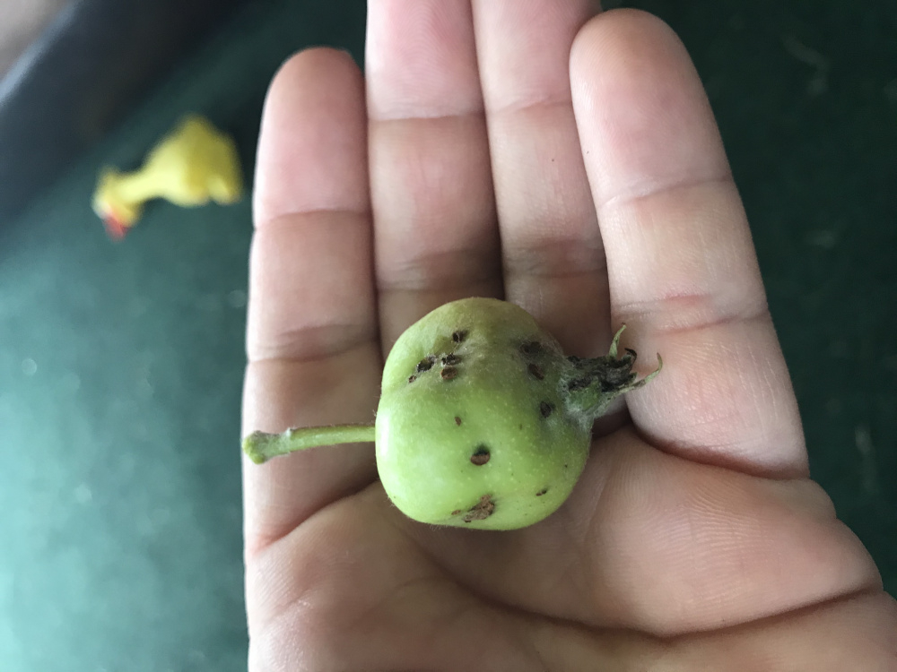 This is an apple from my father in laws apple tree! The leaves have cedar rust on them. Does cedar rust effect the apples as well or is it something else?