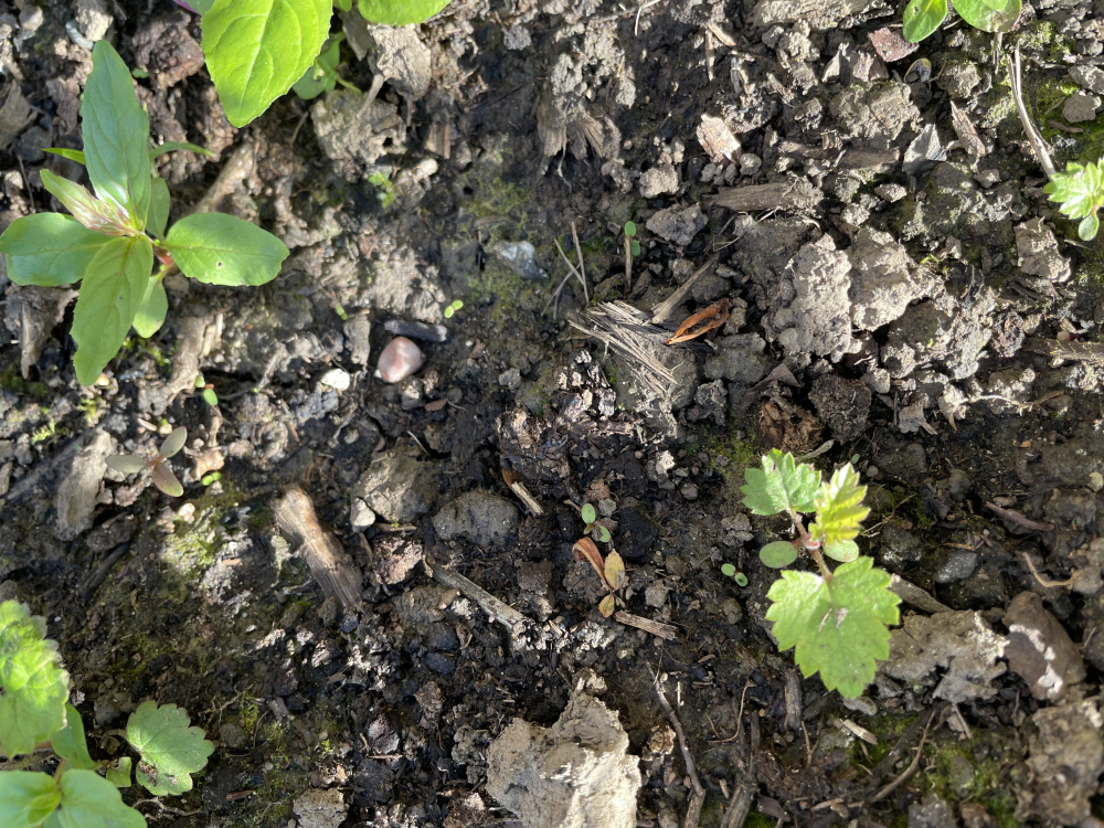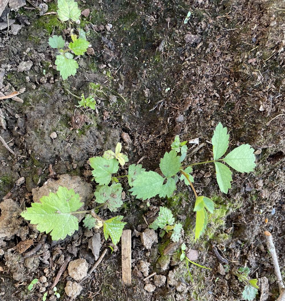 I thought I was dealing with the last few determined culprits - usually a substantial thorny shoot sticking up - when I noticed these little seedlings coming through everywhere and I do mean everywhere … at least 6 per foot of the borders.