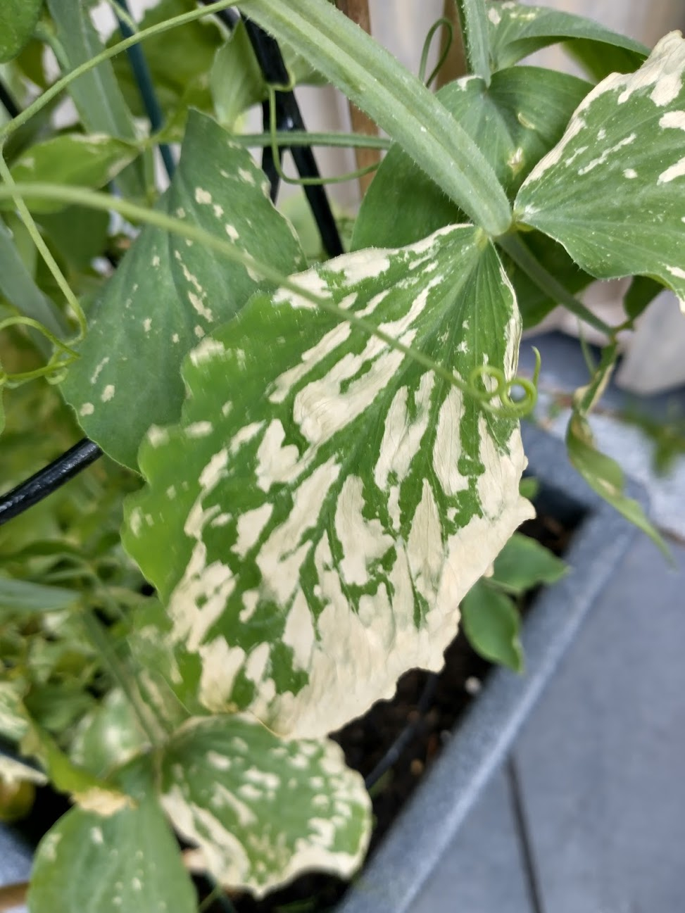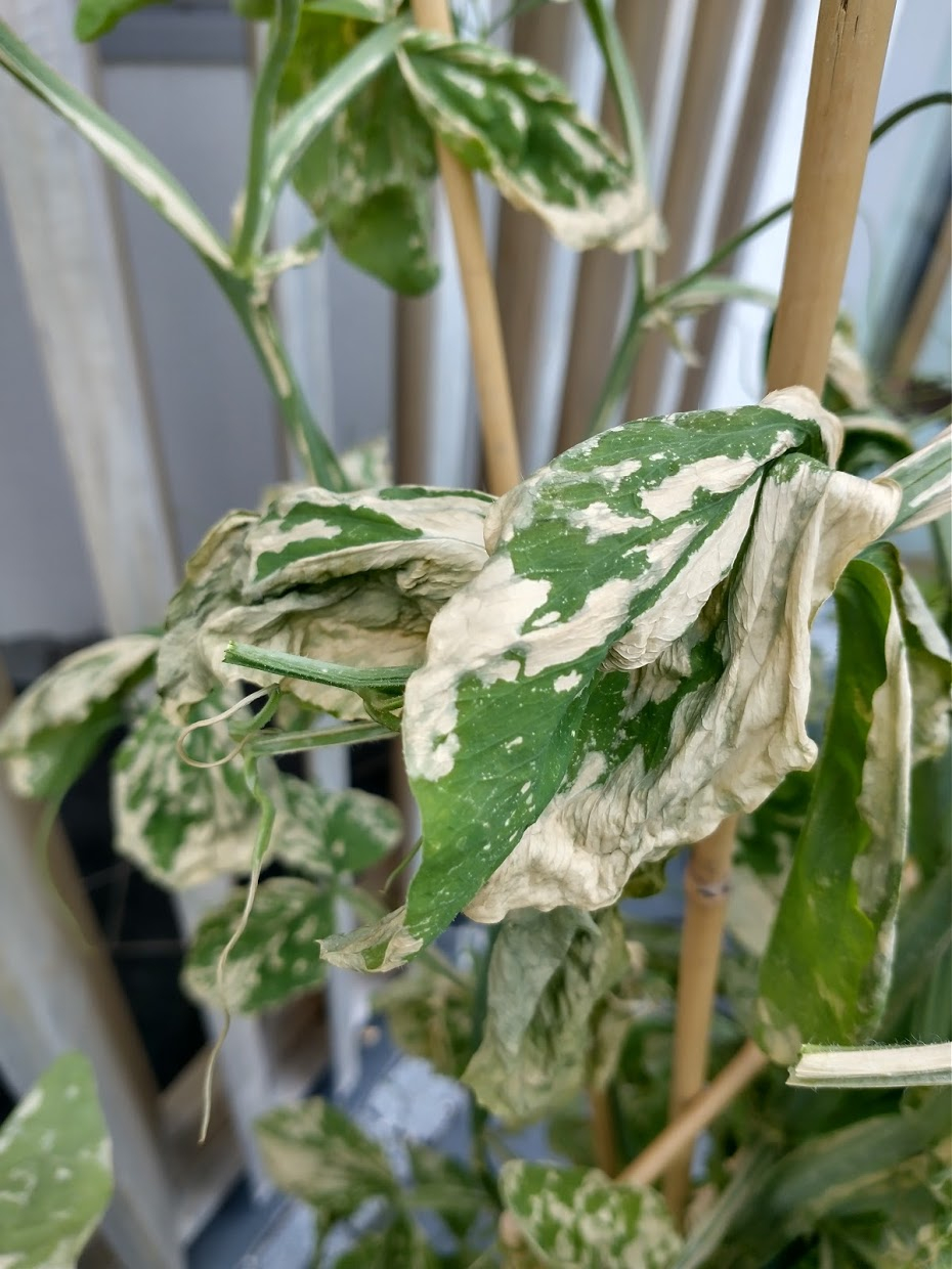 Hi, I grew my sweet pea from seed, hardened off in April, they have been thriving since till last week and then this happened - leaves have basically lost colour like they were splashed with something?? I did give them Miracle Gro last week but surely this would not happen as a result? Would be delighted if anyone could help me - what should I do now? Am I doomed?!!! Thank you in advance!