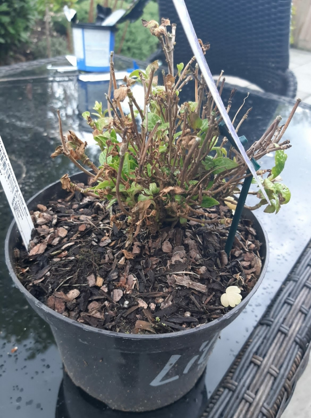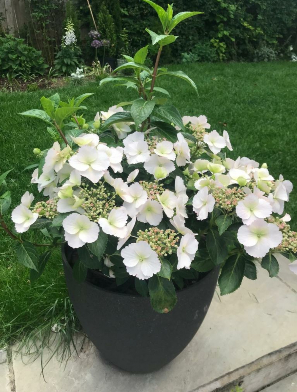 As you can see both are very happy and the condition it was when it arrived from crocus! Some say that the runaway bride needs to be dead headed for continued bloom but still undecided as it looks so pretty, might pinch a few if they start to wilt or perhaps do it anyway in mid July.