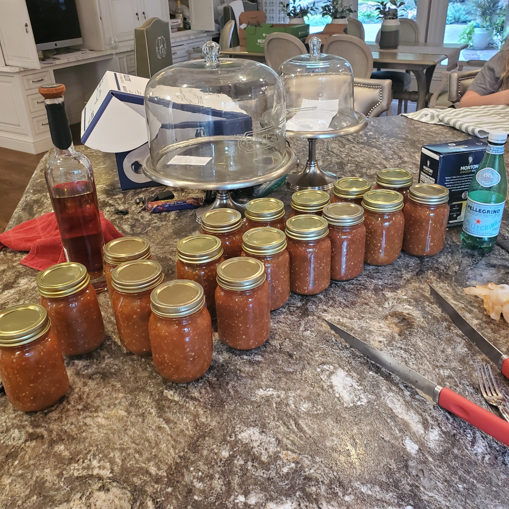 My wife decided to make salsa. A combination of salt vinegar onions jalapeños and mostly tomatoes. Goofed and conned. She says no more tomatoes. She said the same thing when i was bringing her fish everyday