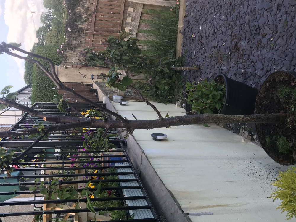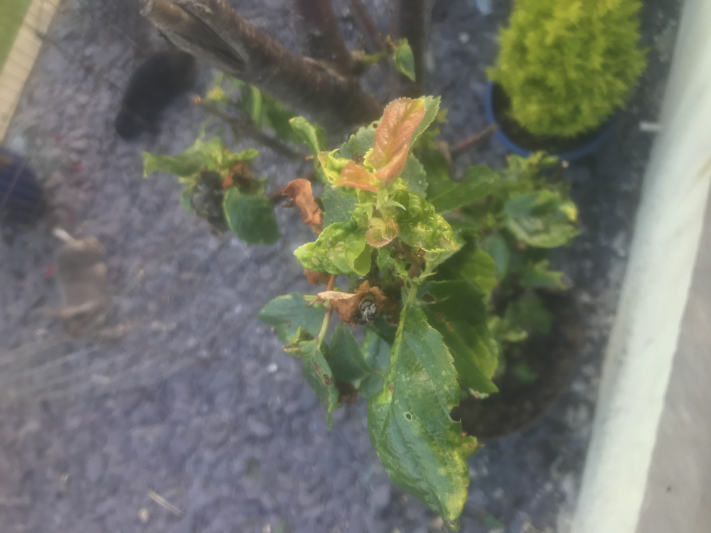 Hi I acquired a Victoria plum tree from my mother in law last Sunday. She sprayed it with water to get the aphids off but it was extremely sunny. The leaves had wilted a bit. A week on I have re-potted it but the leaves are going brown and curly. I have watered it regularly but not fed it.