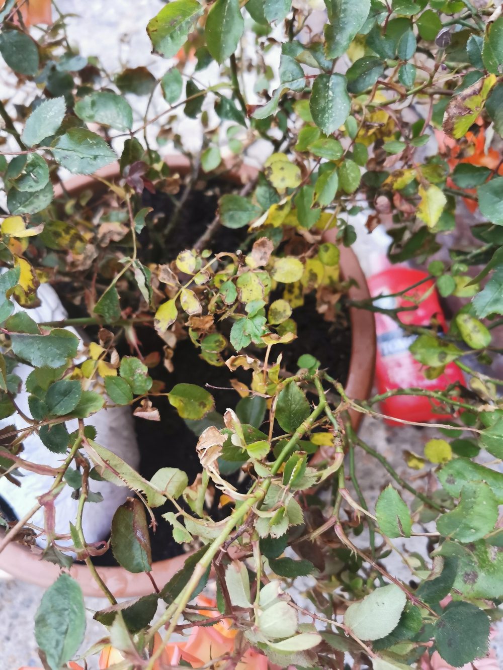 If there are any leaves fallen onto the compost, pick them up and dispose of them. There are various treatments (sprays) for black spot, both organic and non organic.