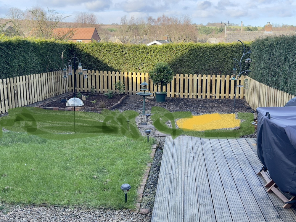 I would still love a pond. I may put one in the gravelled bit......the yellow splodge