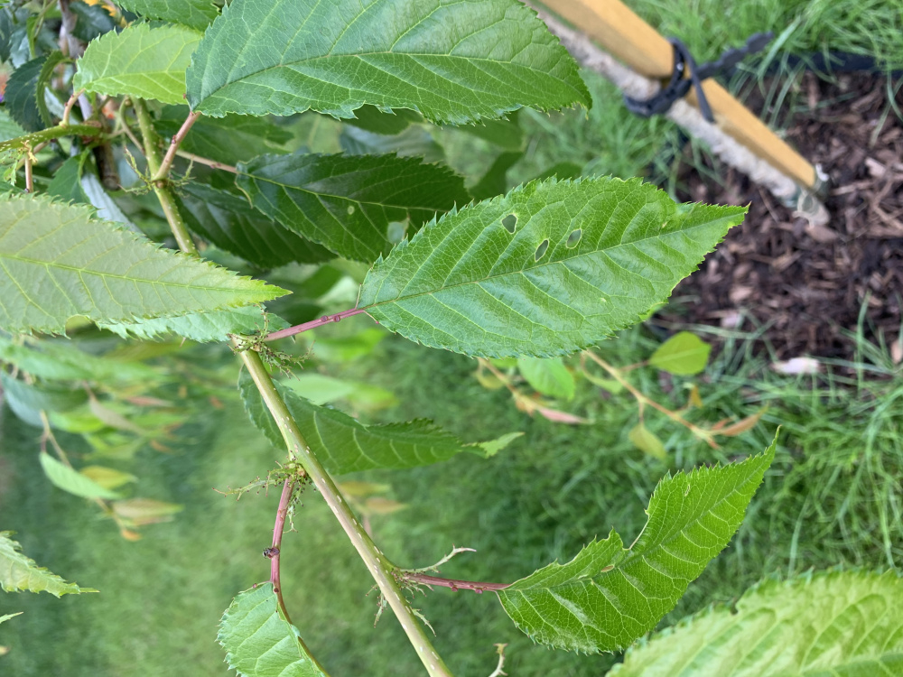 we have a weeping cherry tree (first year) and after seeing a few holes in leaves, a close look has shown these small egg type things across it, and ants active around them