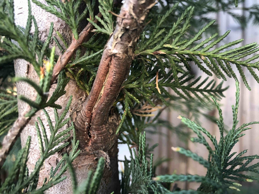 I brushed off all the brown bits and now the bottom third of the trees are growing healthily and vigorously, but the middle third of the tree is now affected.