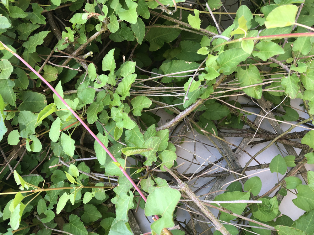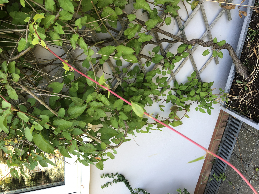 This planter originally contained a clematis, but now it no longer flowers and I fear it has been 'replaced' by a self sown Japanese Knotweed plant. Is this the case?