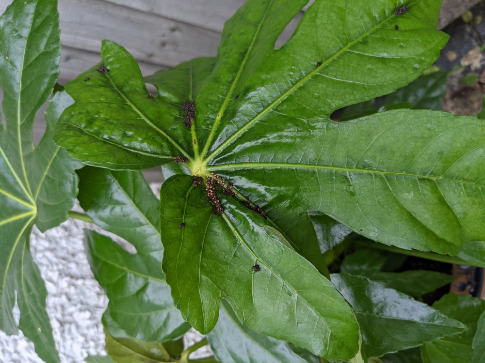 Have these black eggs on leaves and stems on 2 plants in a corner. What's shall I do? What's causing it??? Don't want another plant to die