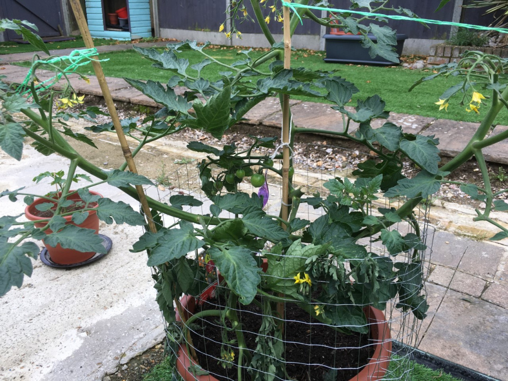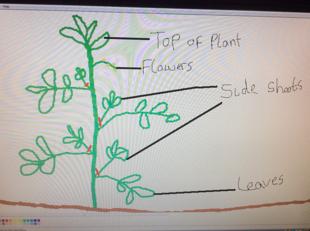 Normally you have one main stem and from the stem side shoots and flowers grow. You want to take the side shoots off but leave the flowers. This way you only need to support the main stem with bamboo sticks.