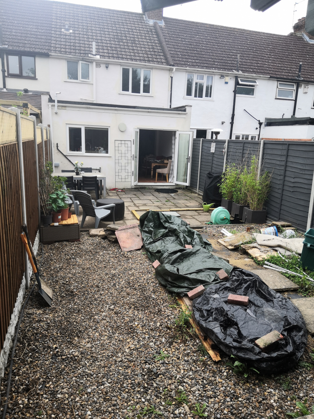 I had a quote a few hours ago to shorten the patio and clear-out the membrane and gravel. I was quite shocked at the £800 + skip cost.