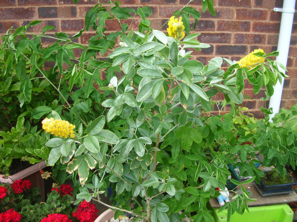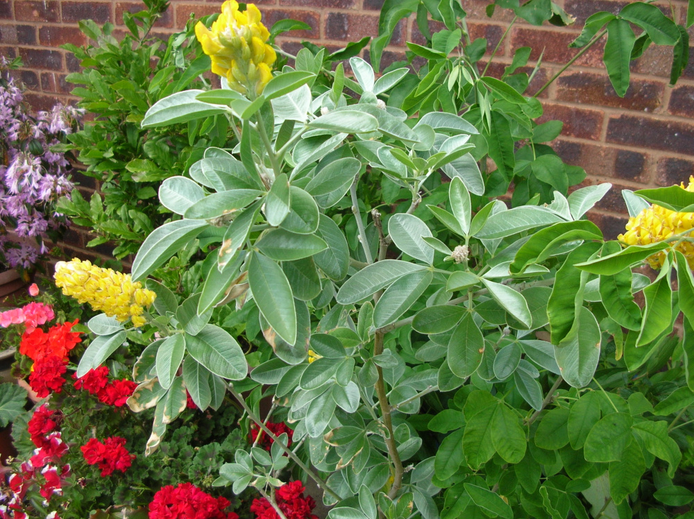 I have had this bush, in a pot, for a couple of years now. It has a few branches but some, instead of having grey/green leaves, have bright green leaves and these have never flowered, although they have seed pods on them. The grey/green leaved branch has lovely flowers. Should I cut the bright green branches away? They are growing from below the soil.