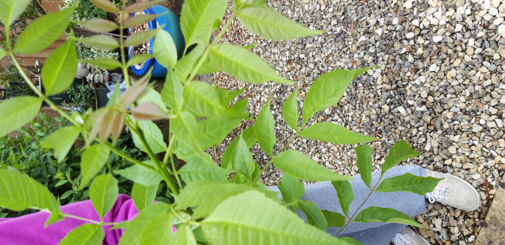 The other plant is an ash tree seedling, remove it while you can as they grow very big very fast and your garden probably isn't large enough for a full grown tree!
