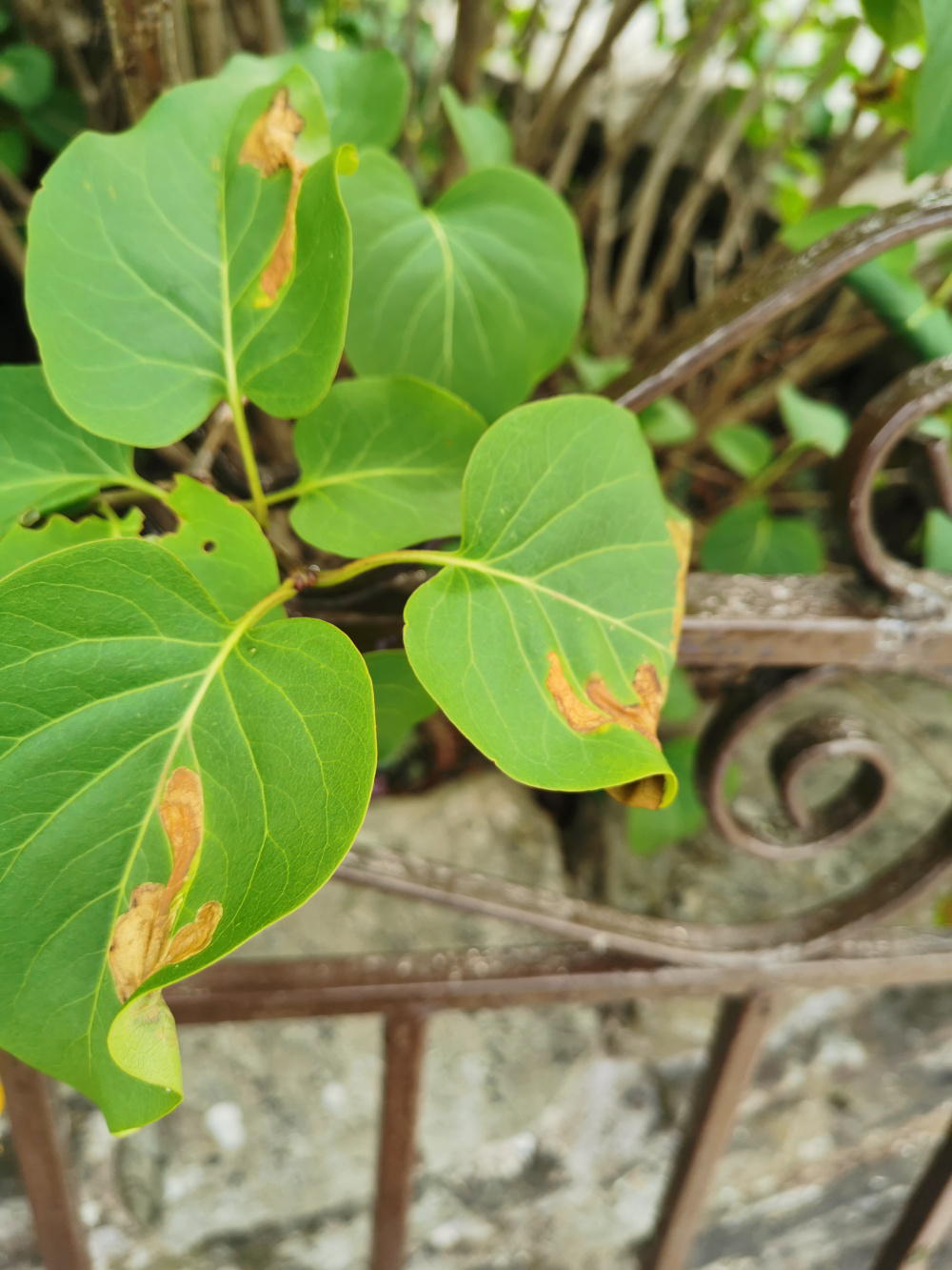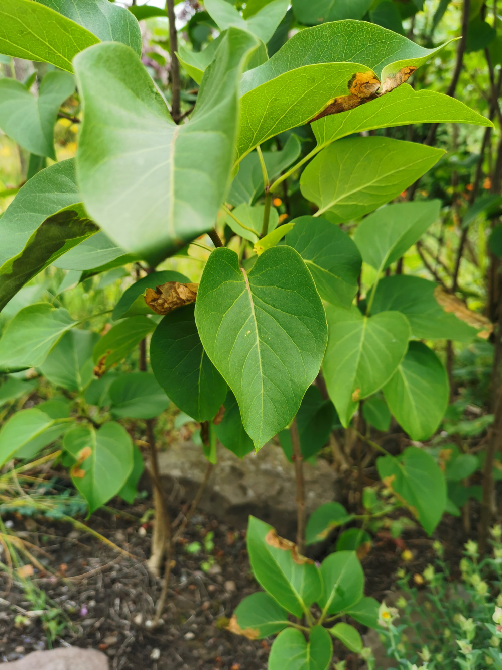 My lilac flowered really well this year. After a few days away during a hot spell I watered it yesterday. I noticed browning patches today