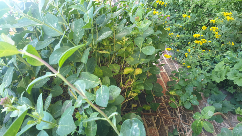 Hi All. Fairly new gardner here after lots of flat living. I have a narrow north facing garden. There is quite and established honeysuckle on on wall. I left it after moving in the autumn as the birds were enjoying hopping about in it. To be honest I've just let a lot of things grow to see what was here and where the sun gets to. It started out great this spring, but has now developed mildew (I think), is dropping leaves and parts look unwell (see photos). It is flowering all at the top that gets the most sun and there are lots of flower buds.