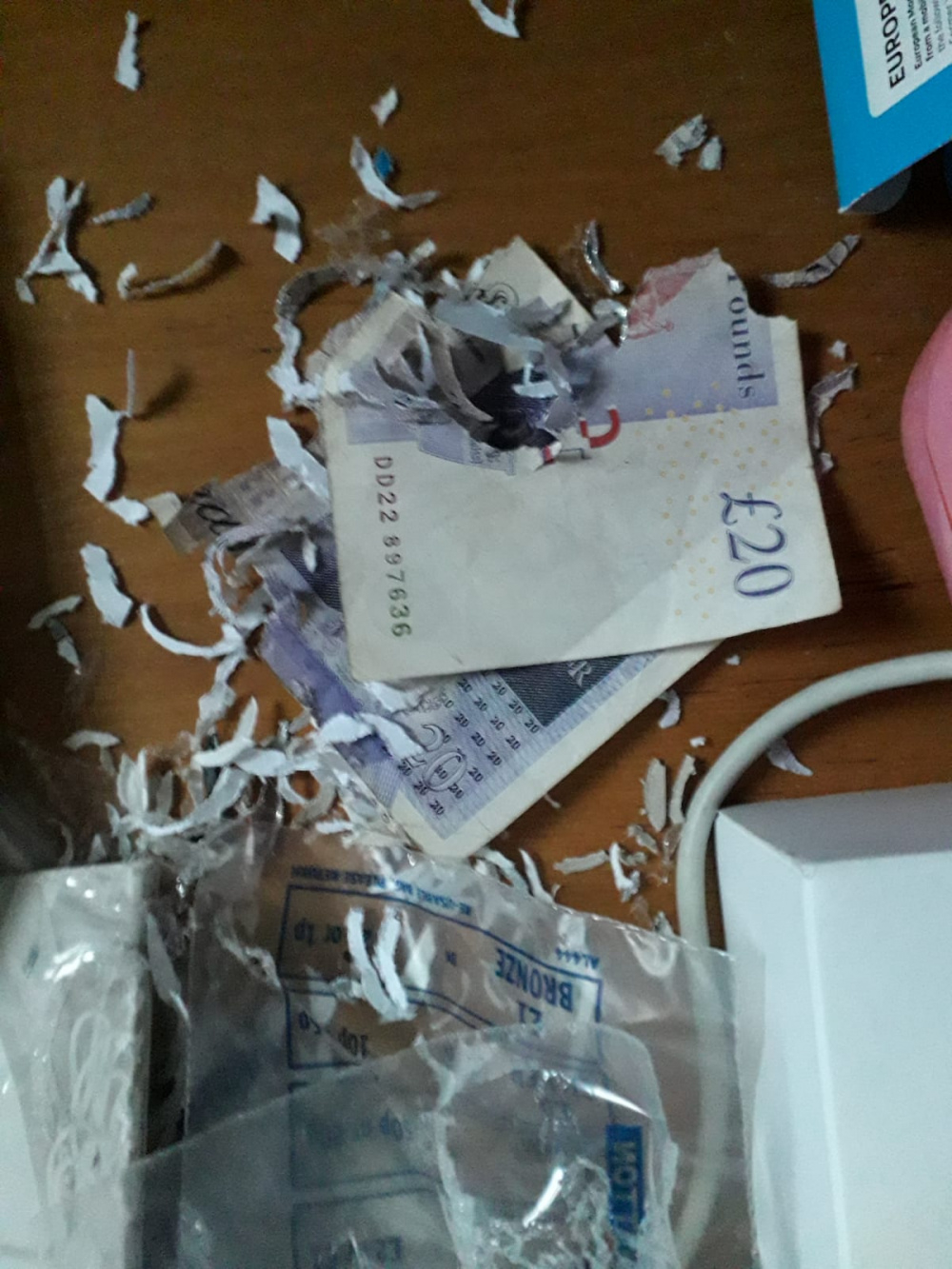 She hid some banknotes in her shed (I've no idea why) - mice have chewed though them.