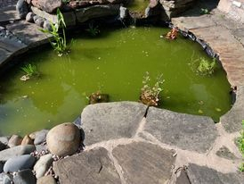 Anyone got any ideas how to stop the water in my neighbour's pond going green? Tried barley straw and Envii Pond Klear without success. No fish in pond and filter is on 24hrs.
