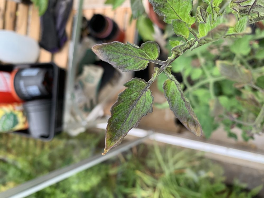 One of the tomato plants in my greenhouse has started to struggle in recent days and is turning brown around the edges including on the new growth.