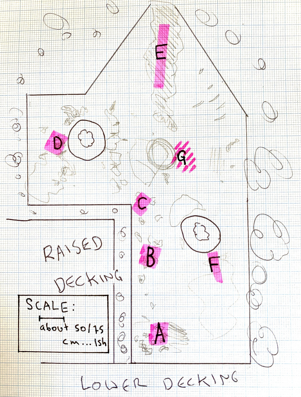 I’ll post a pic of the whole lawn, the floor plan and pictures matching the letters.