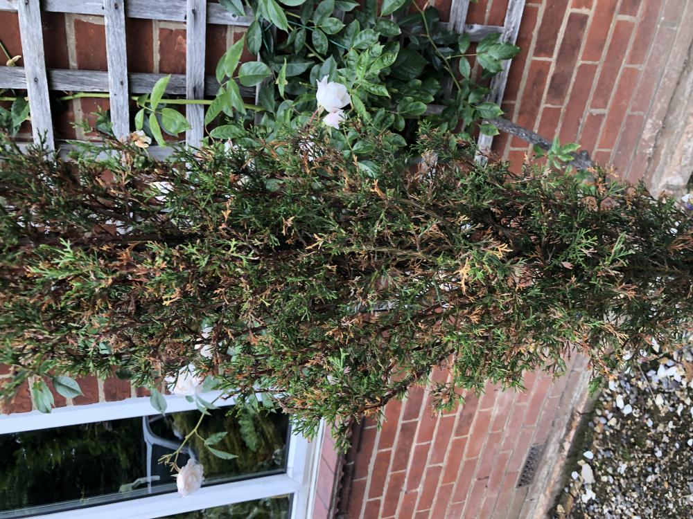 This RHS page on conifer care may help you narrow down the cause of the problem. https://www.rhs.org.uk/advice/profile?pid=132
