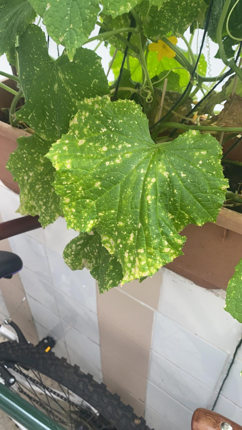 Unfortunately there are yellow / pale spots appearing across the leaves and spreading up the plant. (see photo for details) After a few google attempts there are a few potential things this could be; mildew or CMV seem to be the most common? However these are Marketmore 76 cucumbers which I thought would have been fairly resistant to these problems?