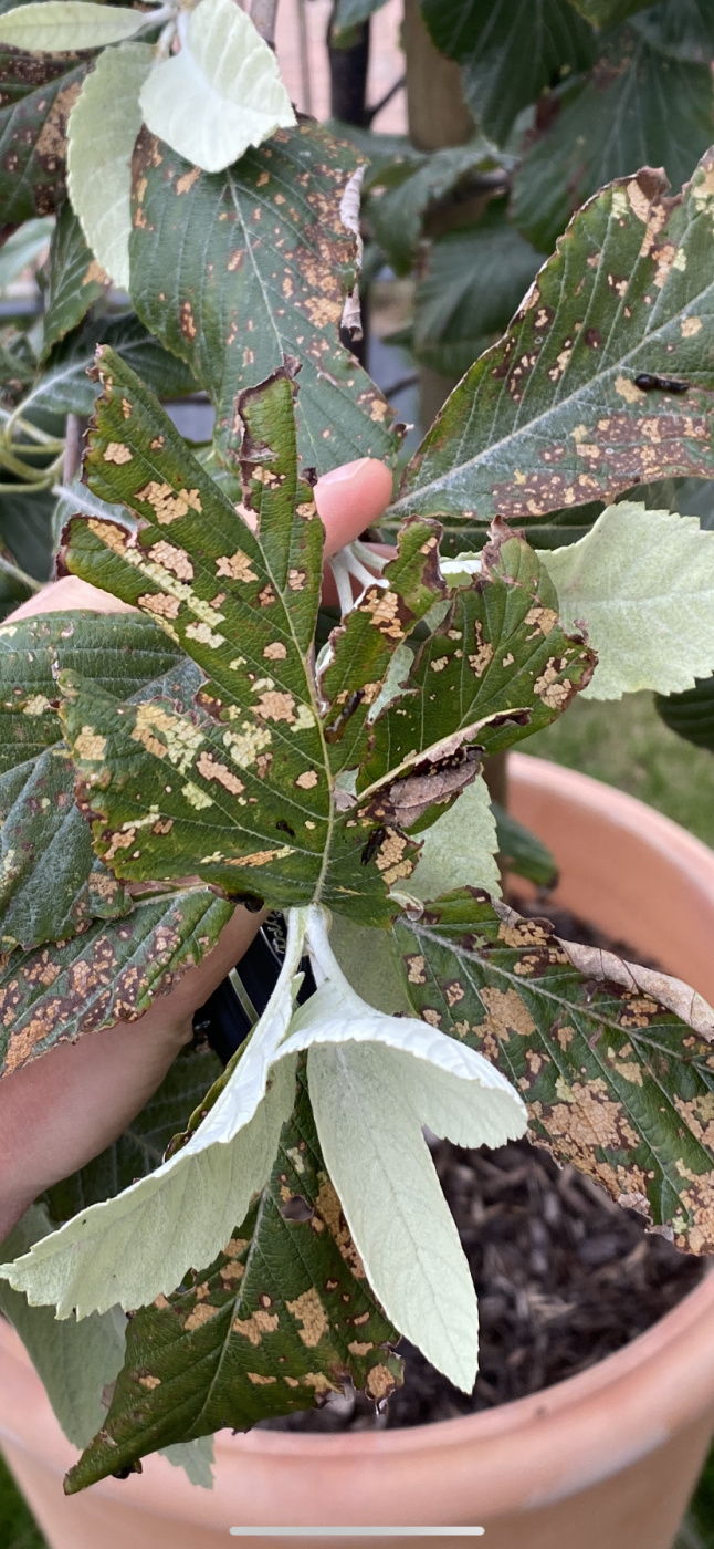 Sorbus aria 'Lutescens' Tree - Leaf disease issue