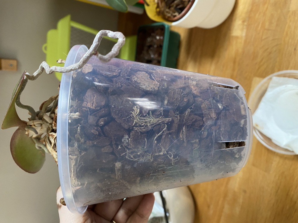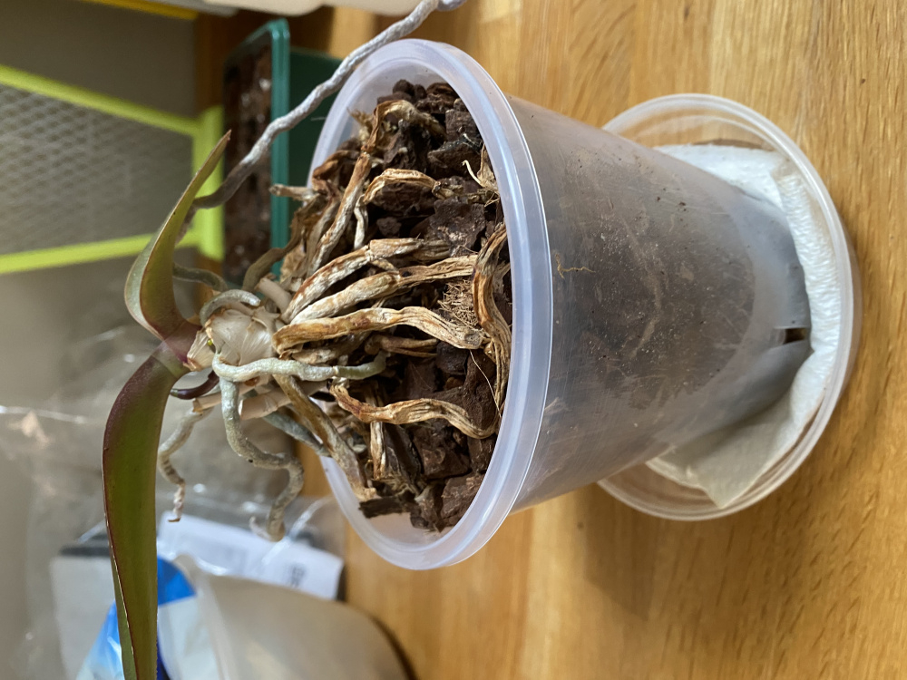 Good Morning EveryoneMy mother in law has given me this orchid to rehabilitate. She hasn’t given me it’s name. Do I repot it or leave it as it is? And if it’s to repot how does one go about it? Any roots that need trimming? Any help from orchid experts would be greatly appreciated.
