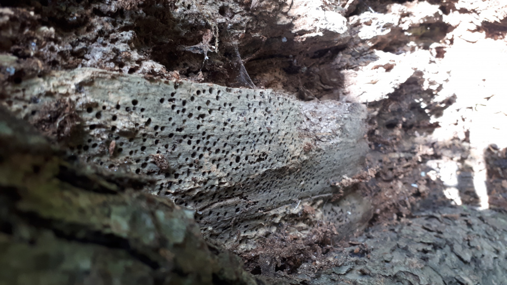 I have recently moved and whilst weeding, I noticed that my really old apple tree is being invaded and eroding at the base of the trunk and higher up the tree, they look like woodworm holes...