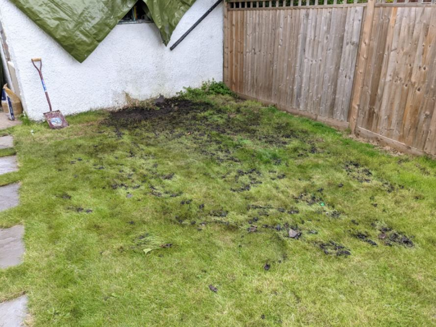 We tipped this out into the garden too but now, well, it looks terrible. We're hosting our wedding reception in our garden in three weeks, so I want to get the situation sorted. Will the mud dry out, or do we need to do something?