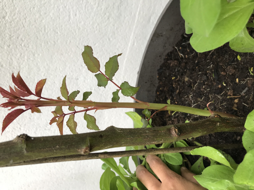 This is a standard rose and this extra stem has suddenly sprung up in the last 2 days.