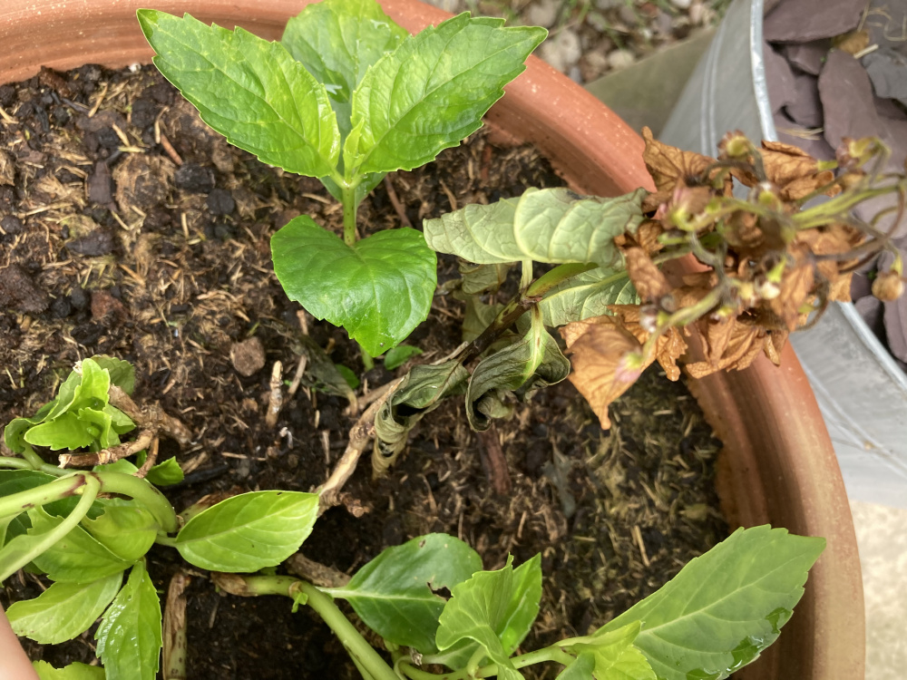I bought a hydrangea this year and replanted it in a large pot. In between when I bought it and repotted it, a few branches turned brown, the leaves blackened a bit and it shrivelled. The rest looked healthy so I cut off the dodgy parts when I repotted it. It’s grown quite a lot since then but I’ve had two more branches that have finished flowering and then turned brown and shrivelled up. The rest looks really healthy but I’m scared it will spread. Does anyone have any ideas what might be wrong?
