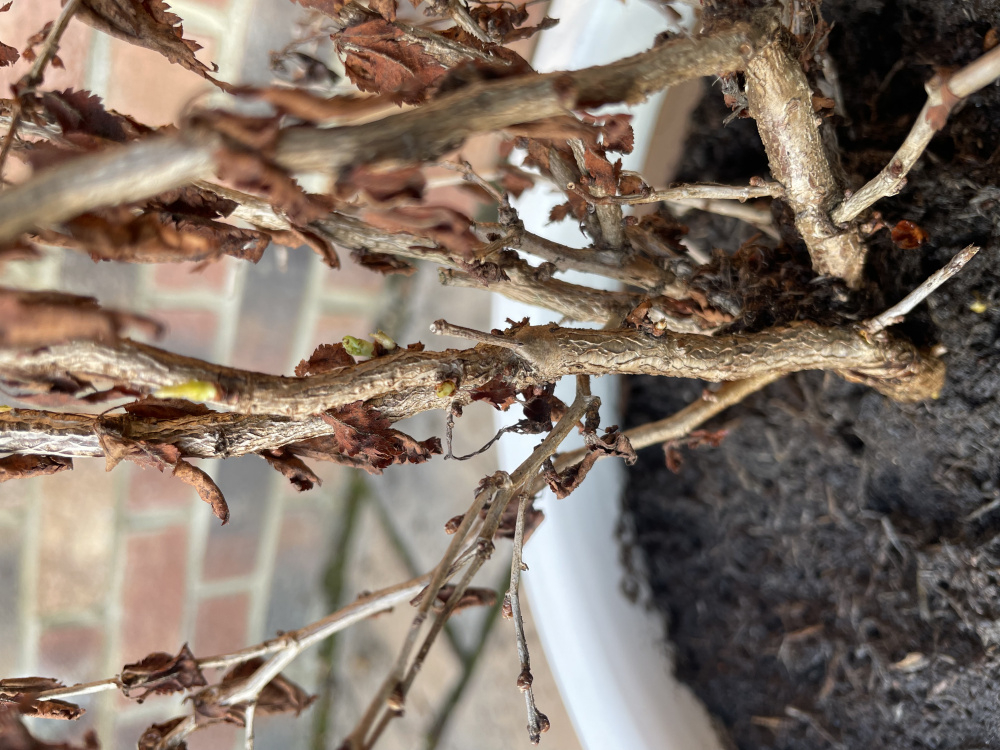 The last picture shows some signs of life with a few tiny green shoots.