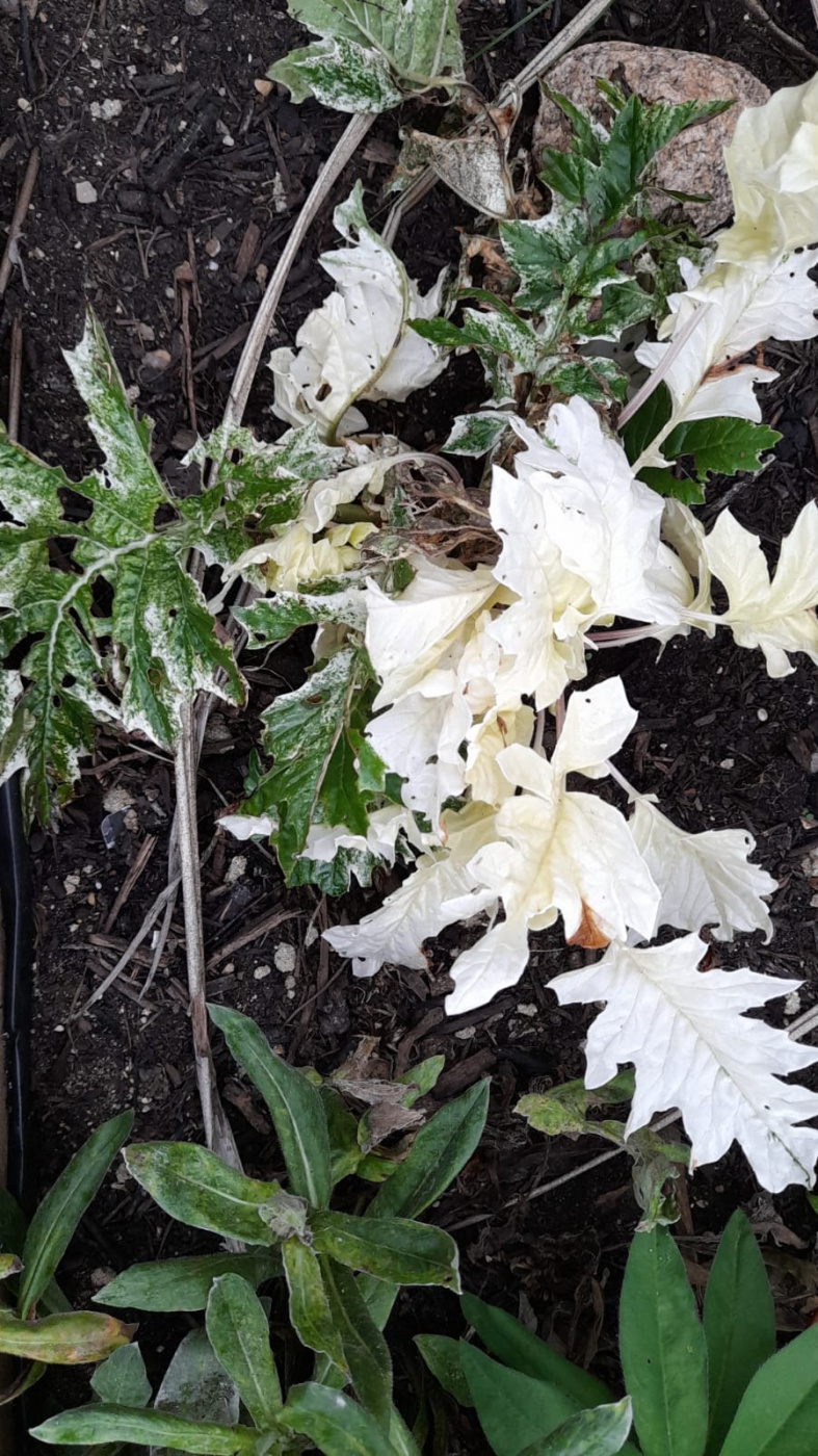 Hello, I planted my Acanthus Mollis ‘white water’ in a raised bed around Easter. Everything else in the bed is doing well but this is now only producing white leaves with no variegation. Any suggestions?