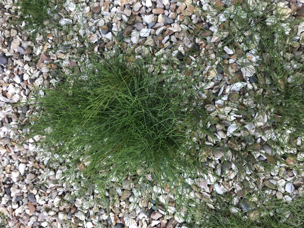I'm looking for some help firstly to identify what I think looks like a coastal grass which is consuming my stones at that are laid on the front of my garden. The whole garden has a stones over it, but this particular 'grass', has only appeared over the last couple of years. It is at least a 3 hour job every 3 weeks to clear it and pull them out. Can anyone identify it and tell me how I might be able to get rid or at least minimise it please?
