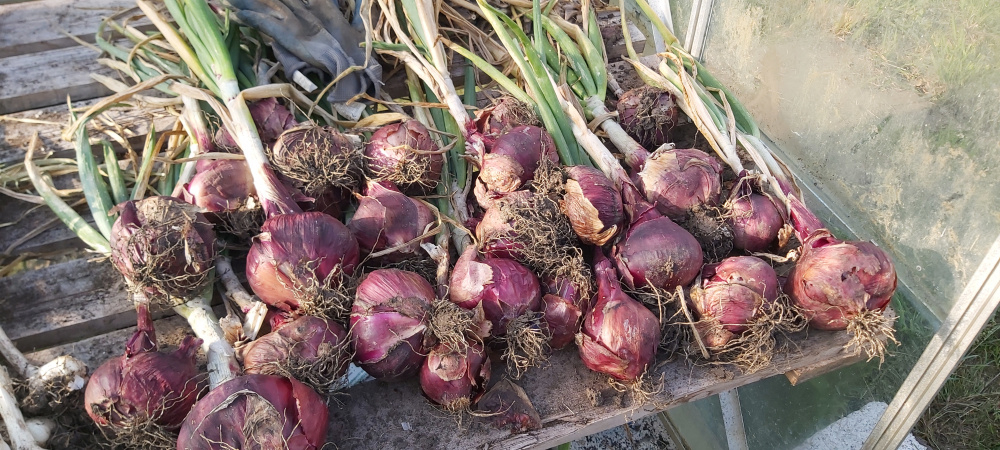 I've given up growing Red Baron after several poor harvests and keeping abilities. I planted a small bag of white onions this year but can't remember the variety and have obtained seeds for Rouge de Niort to sow next year. They will actually be pink and, I hope, as tasty as the pink Roscoff onions I can buy here in season.