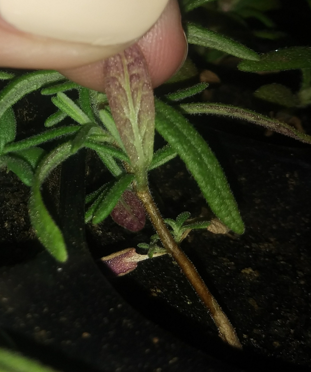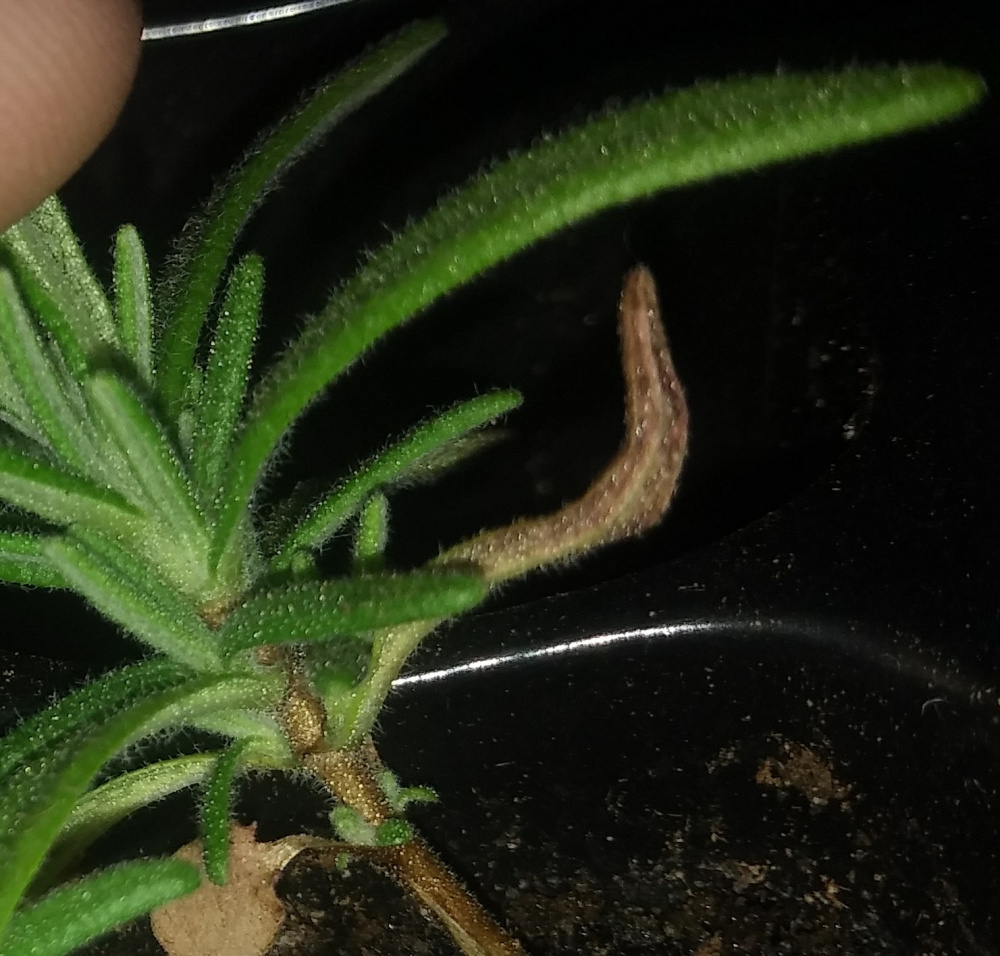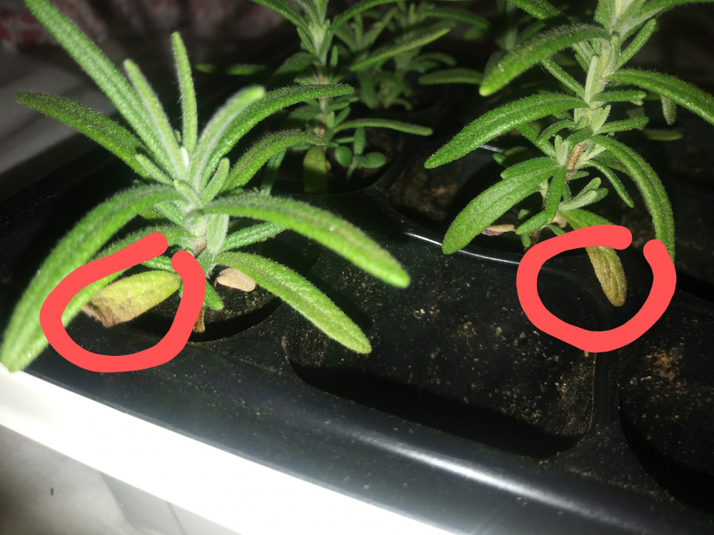 How come my Rosemary seedlings bottom leaves have gone dry and purplish-brown?