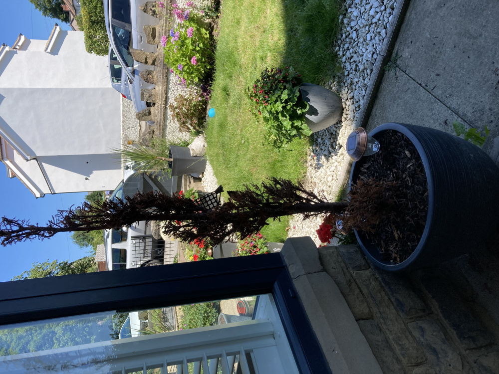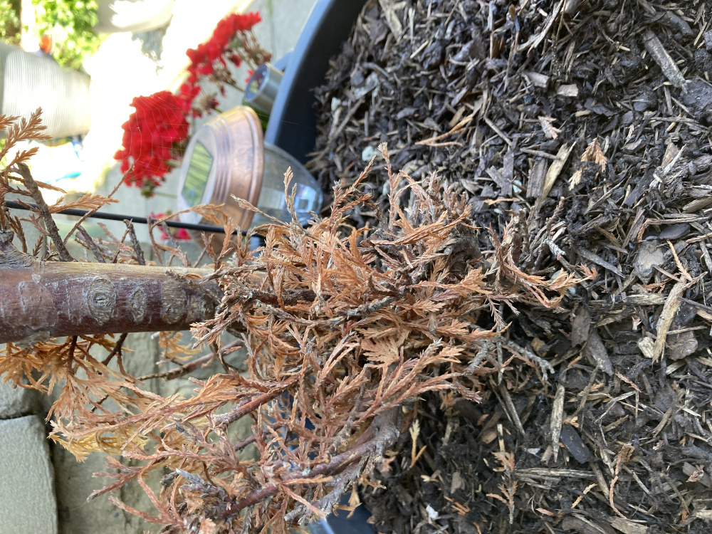 I very much doubt it's been fine for over 2 years. It can seem like it's died suddenly, but conifers generally decline over a long period until they just can't stay alive any longer, unless some other factors are present to see them off. Lack of water is the most likely reason. Once potted shrubs or trees dry out, they're very difficult to rehydrate