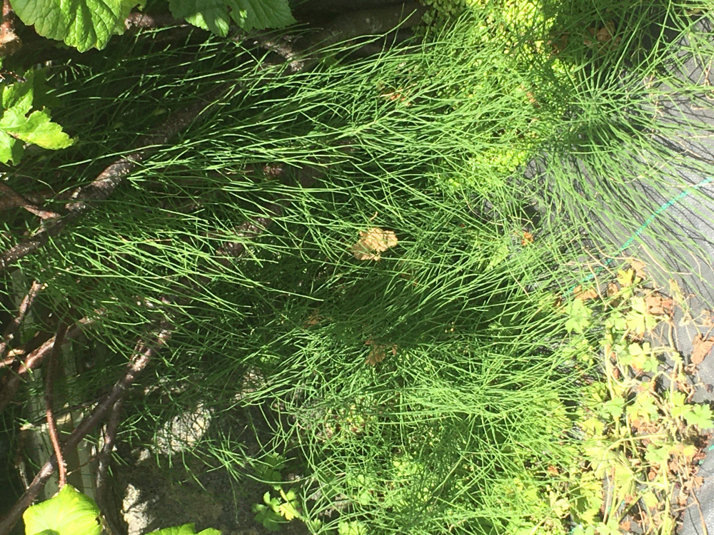 These keep grwing everywhere, even coming throught the tarmac of the drive, they are colloqually known as 'Horses Tails' but I've no idea of their real name or how to get rid of them permanently, I use a weedkiller, they die (or seem to) a few weeks later, they are coming back and again like my other post they spread very quickly. I have had them drowing up to waist level (about 3ft tall) if we have been on holiday for a couple of weeks.