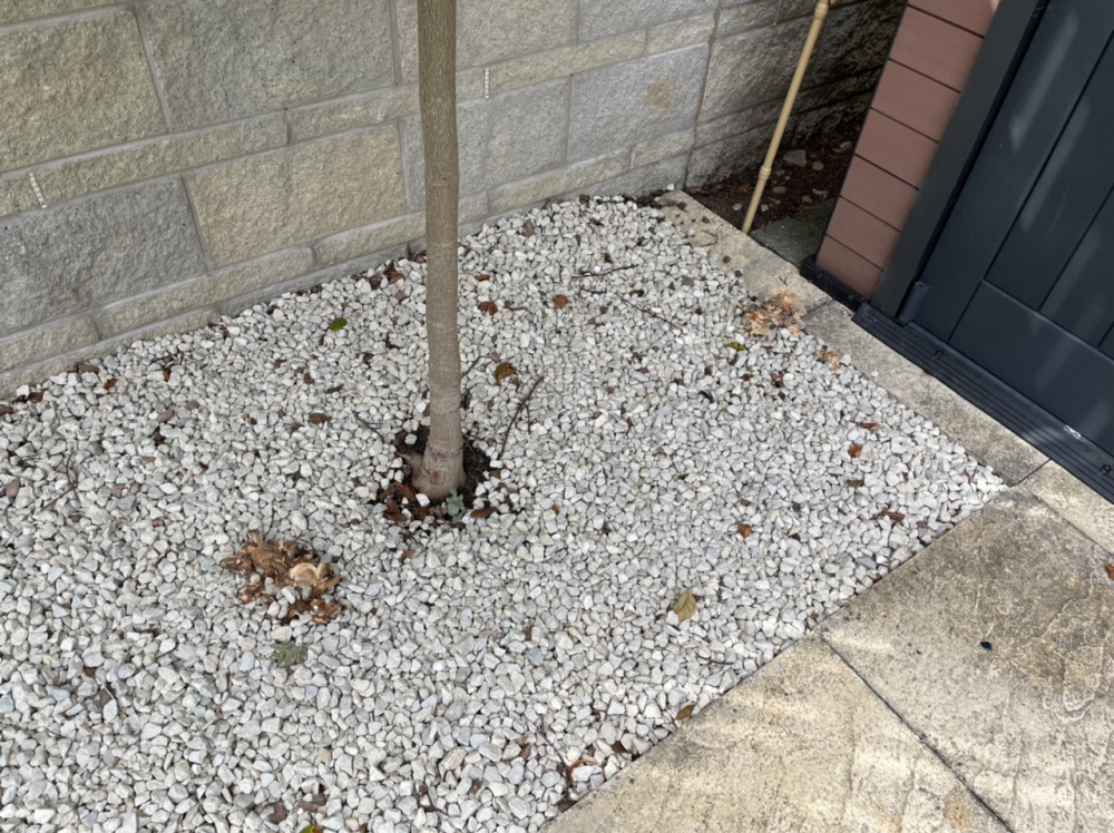I filled this area in below my trees about 14 months with weed suppressing fabric and the stones on top. I had been really pleased that there had been no sign of even a single weed protruding but then straight out of the blue this lot of fungi appeared. I want to ultimately kill them off then remove the stones in that area and lay a new section of fabric as I’m imagining what’s there will be destroyed now and it could be the start of many weeds starting to come through.