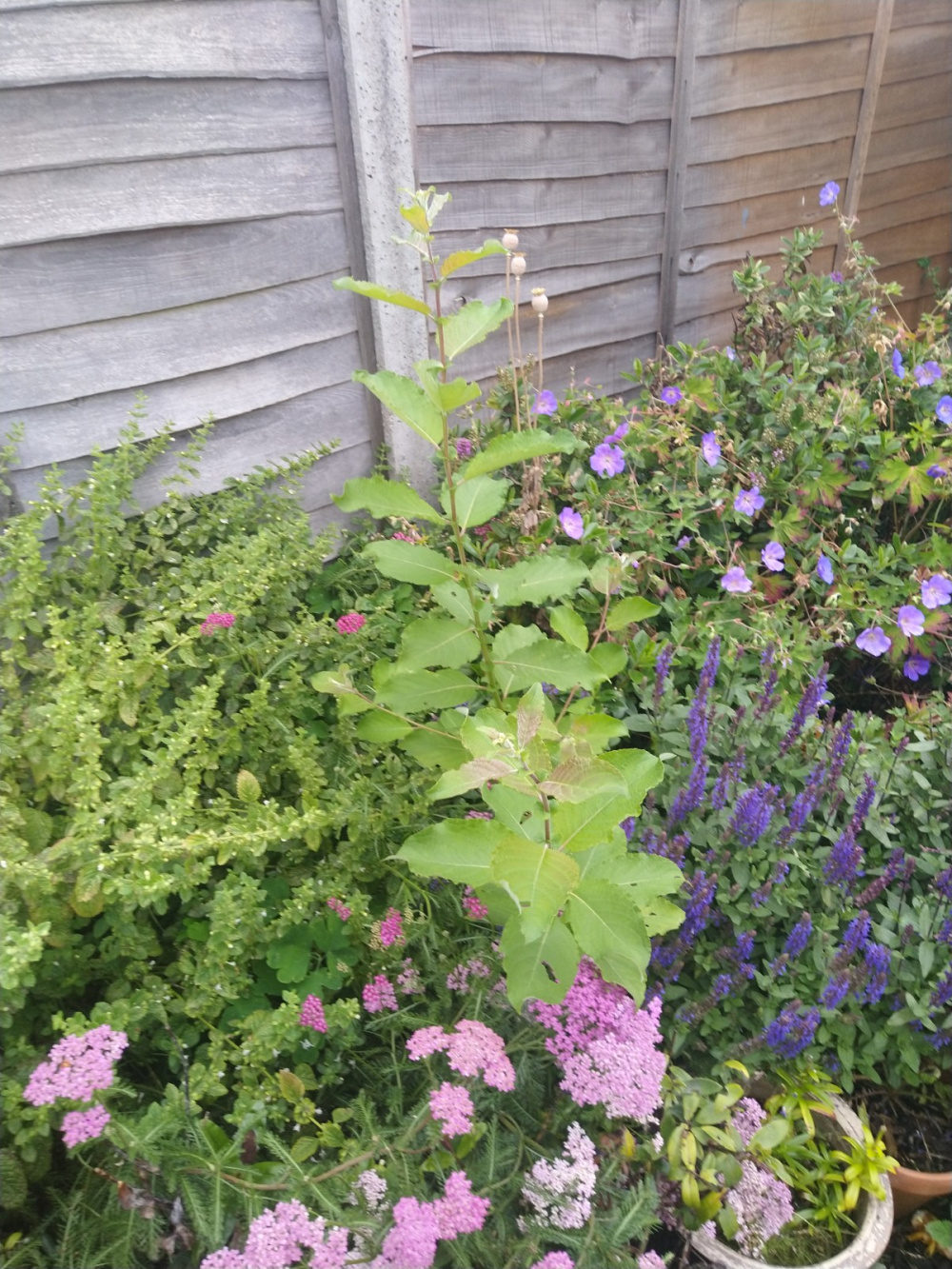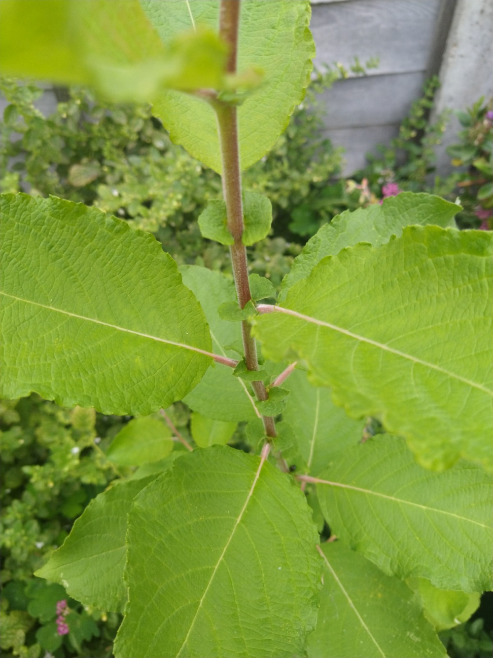 Hi folks. Please see attached two photos of a plant/weed/tree/not sure! - that's in my border. It's been there for at least a year but I never let it flower, I always cut it back. It's got some curious - what I call 'subleaves' - at intervals along the stalk! It's getting quite tall, as you can see. I'd be really grateful if anyone could help identify it, please. Many thanks in advance.
