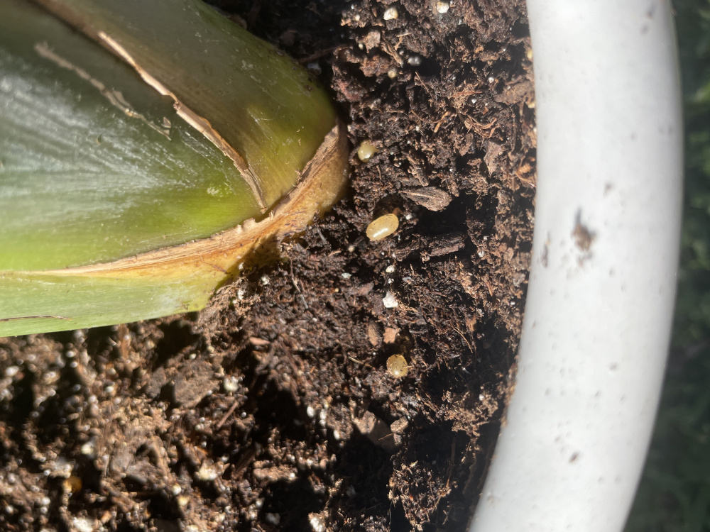 Any advice for growing this in a potted plant outside in Southern California? ALSO, I found these little bits in the soil today, I haven’t seen them before and I’ve had it for a few weeks now, anybody able to ID these translucent balls??