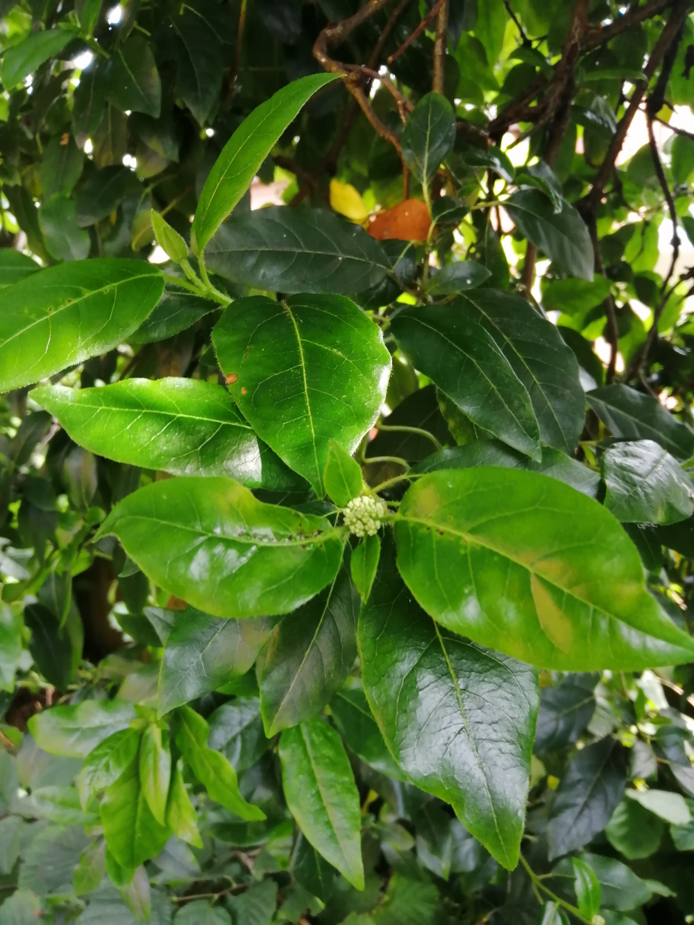 Clumps of small flowers on tips of branch, but at present only green as haven't fully flowered.