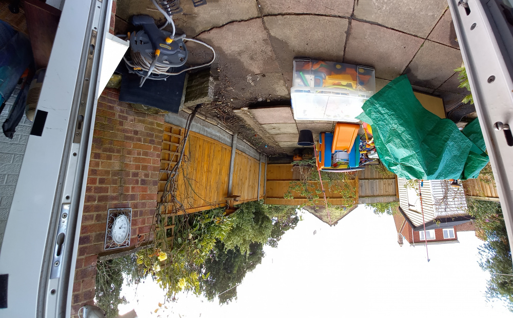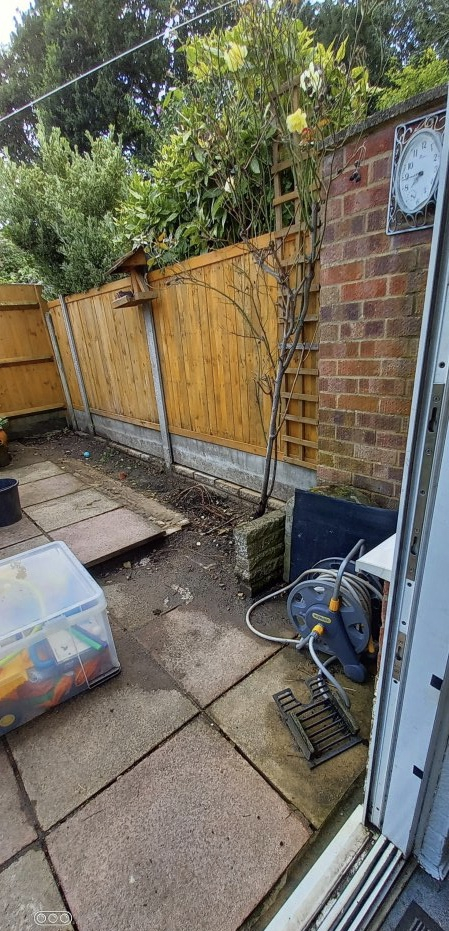 4. Sorry, but I think the paving ought to go. The pink and grey chequerboard look is so dated so if your budget will not stretch to new slabs, recycle the grey paving slabs where the lawn will go and replace the pink ones so as to get uniformity. Jet washed, they will look much better.