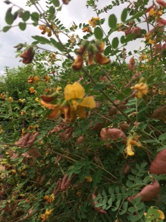 Hi can anyone identify my plant please it has yellow,red and orange flowers which turn into seed pods. it was in my inlaws garden but they can't remember my husbands uncle called it a grow your own bush please help and identify it for use please