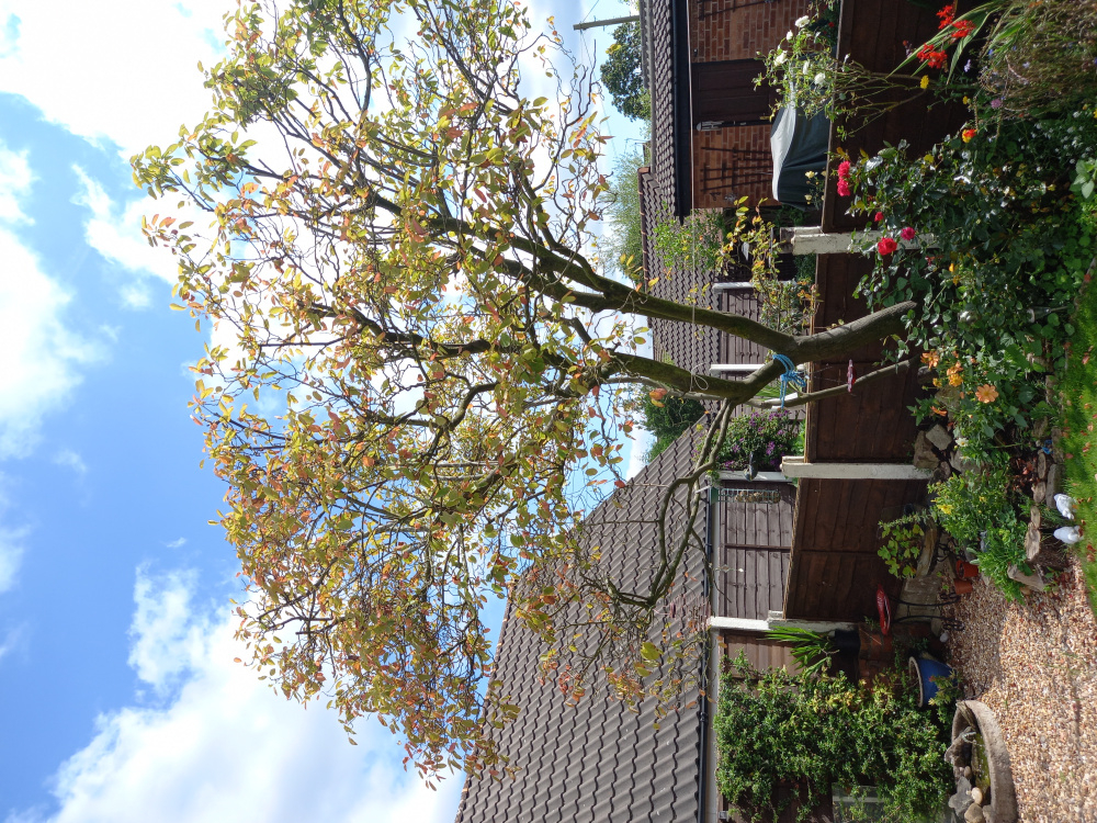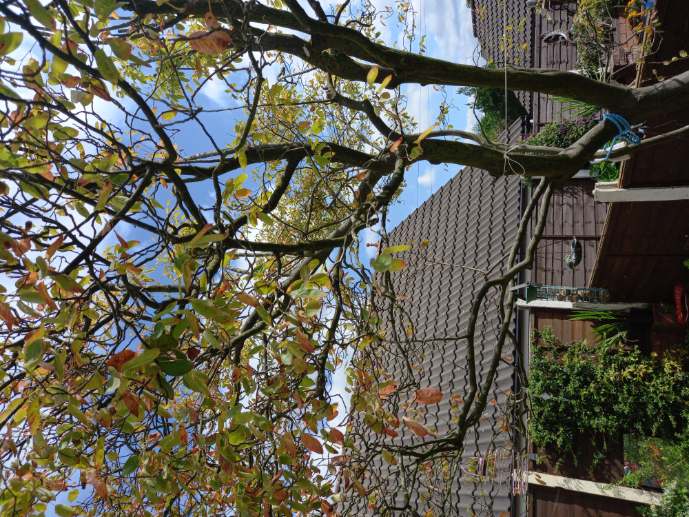 The tree was already in the garden when we moved in at least 25yrs ago and it's been beautiful. This last couple of years it seems to be struggling. There were quite a few dead branches, we have removed, the branches are covered with a kind of moss and the leaves have gone a really pale green. and there was a fungus growing at the base which we have removed. Are we losing the tree or is there something we can do to save it. SNOWY MESPRIL.