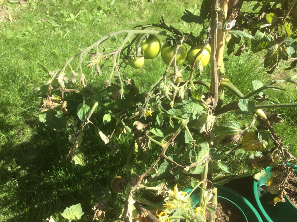 Anyone know what’s wrong with my tomatoes? I don’t think it’s BER as they are going brown from the top. They were fine one day, then we had those few days of torrential rain and a couple of days later there were brown areas on the stems, now the fruit is going brown. The leaves wilting and going brown but not dried.