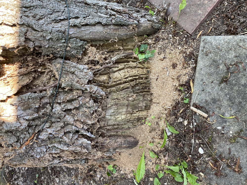 I moved into a new property 3 weeks ago. It has a beautiful willow tree in the garden. On closer inspection I noticed lots of sawdust at the base, lots of creepy crawlies and the inside of the tree looks as though it’s being hollowed out. There are a large amount of red ants nearby but not on or in the tree that I noticed. What could be causing this and what can I do?