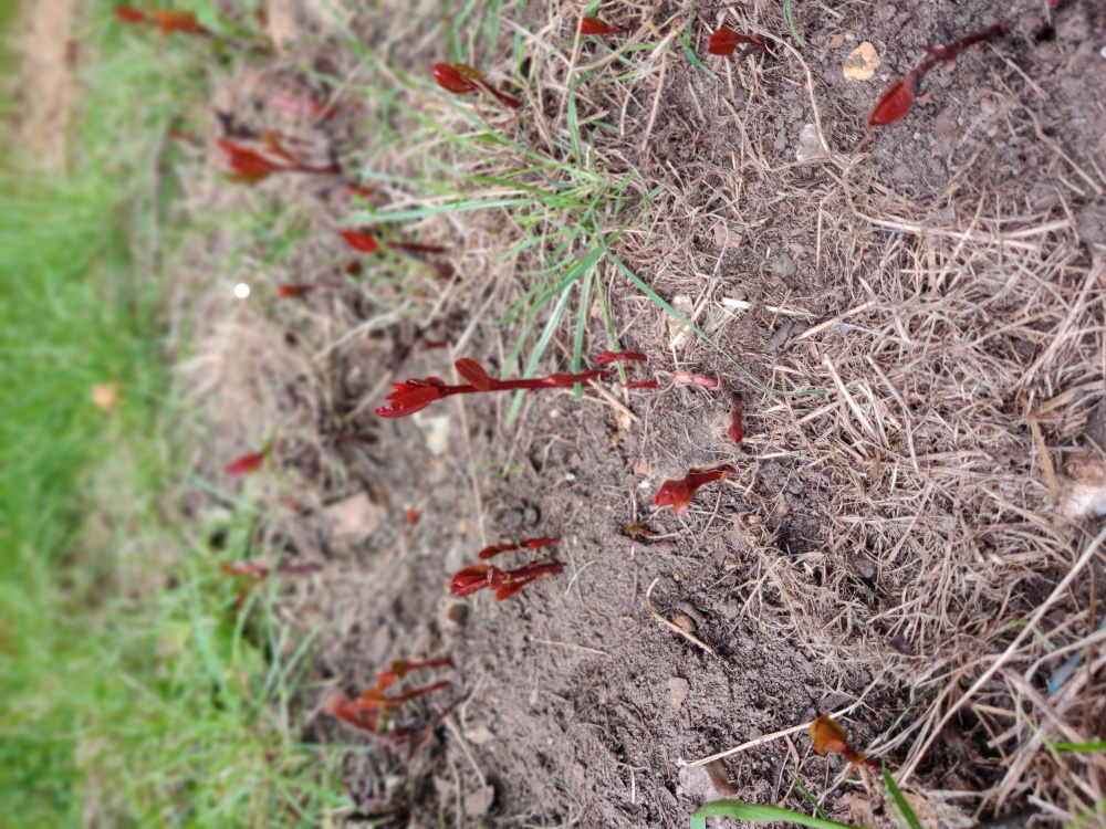 However, if you can improve the soil with some compost and then level it ready for sowing grass seed in September you'll probably find that regular mowing cuts off those shoots so they can't feed the roots and it will eventually give up.